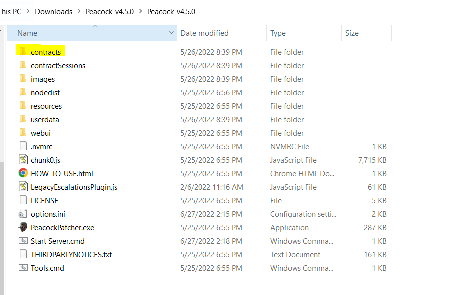 .json形式保存在你的Contracts文件夹,如上图所示。 - 如果你想让其他人游玩你的自定义Peacock契约,请确保在Peacock Discord群组的